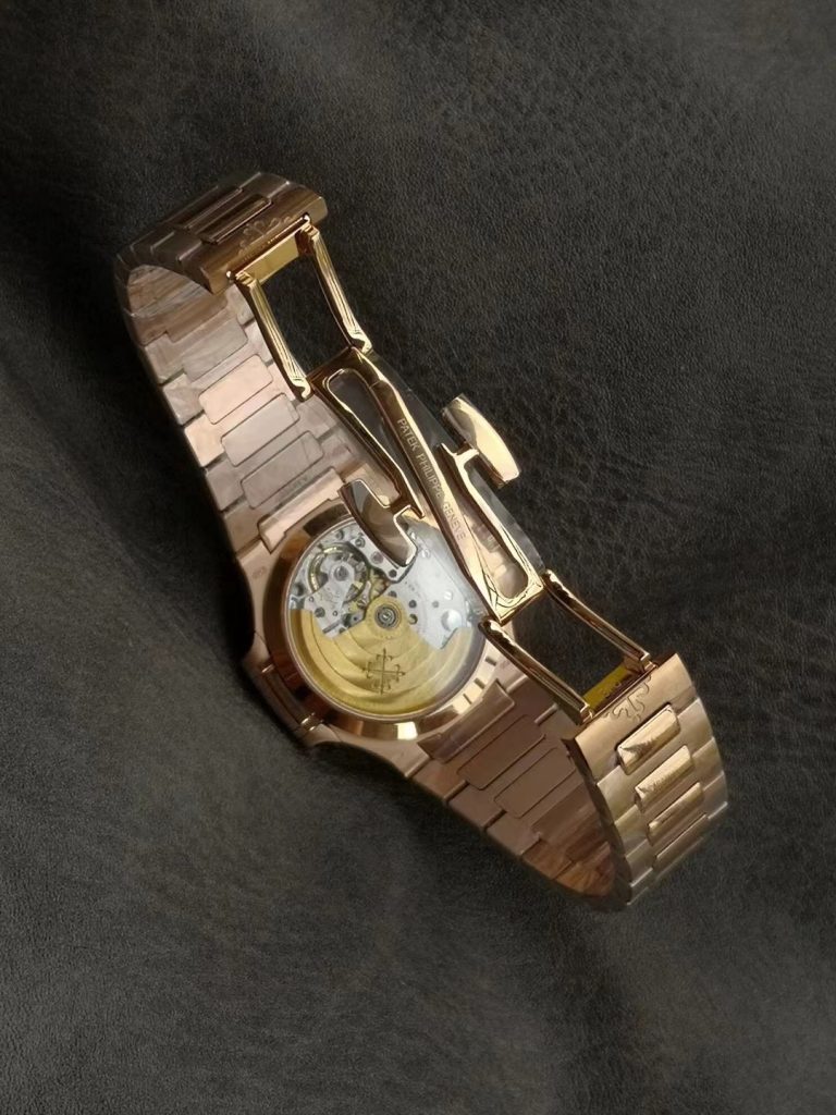 このパテックフィリップ ノーチラス スーパークローンには、精巧な「Cal.324 S C 自動巻き機械式ムーブメント」が搭載されています。サファイアクリスタルのシースルーバック越しには、カラトラバ十字が刻印されたゴールドのローターや、美しく仕上げられたムーブメントの構造を鮮明に鑑賞することができ、機械式時計としてのロマンも存分に味わえます。